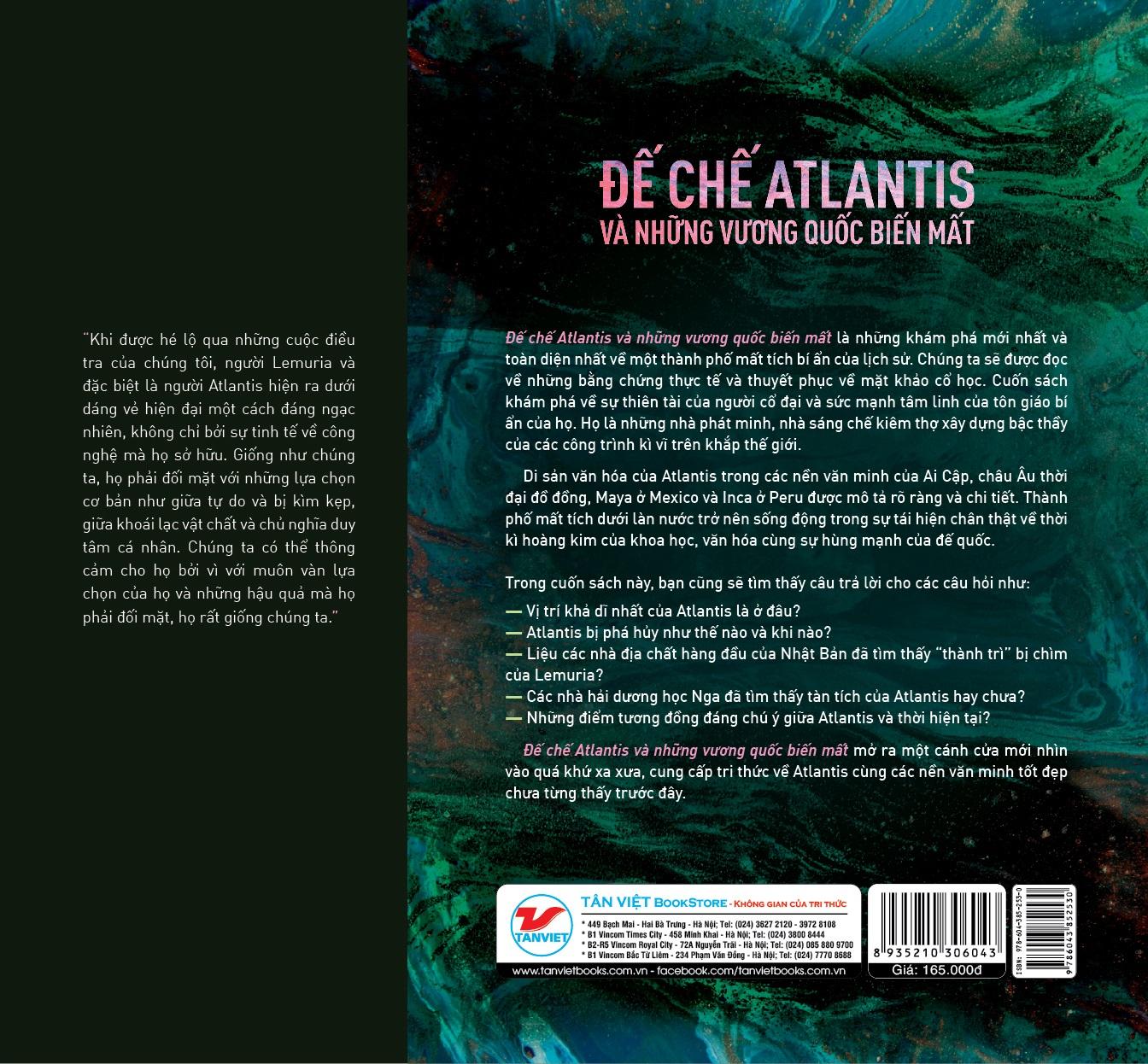 Di sản của Atlantis được tìm thấy trong rất nhiều nền văn minh cổ đại, từ Pharaon Ai Cập, thời kì Đồ đồng châu Âu, đến Maya Mexico và Inca Peru. Đế chế Atlantis tưởng như biến mất nhưng đã quay trở lại sống động thông qua những tái hiện của nó trong các nền văn minh rực rỡ và đế quốc hùng mạnh. Qua các trang sách, bạn đọc sẽ tìm được những câu trả lời cho các câu hỏi như: