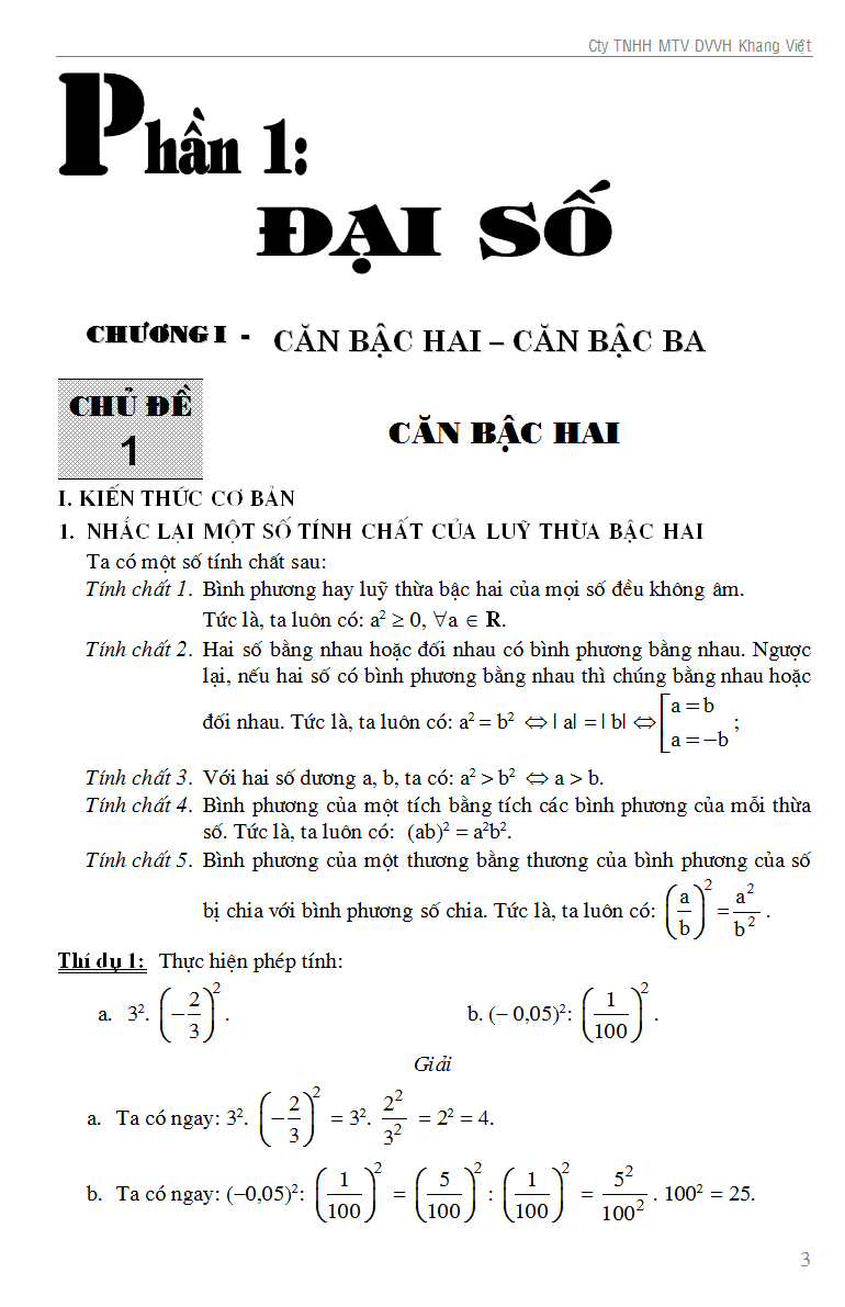 400 Bài Toán Cơ Bản Lớp 9 (Dùng Chung Cho Các Bộ SGK Hiện Hành) ĐẠI SỐ Chương I. CĂN BẬC HAI – CĂN BẬC BA I. Căn bậc hai II. Căn thức bậc