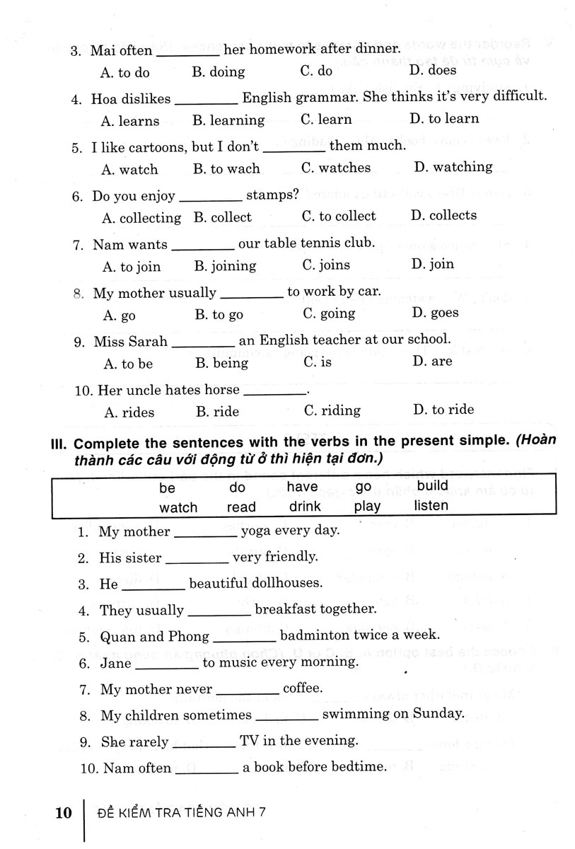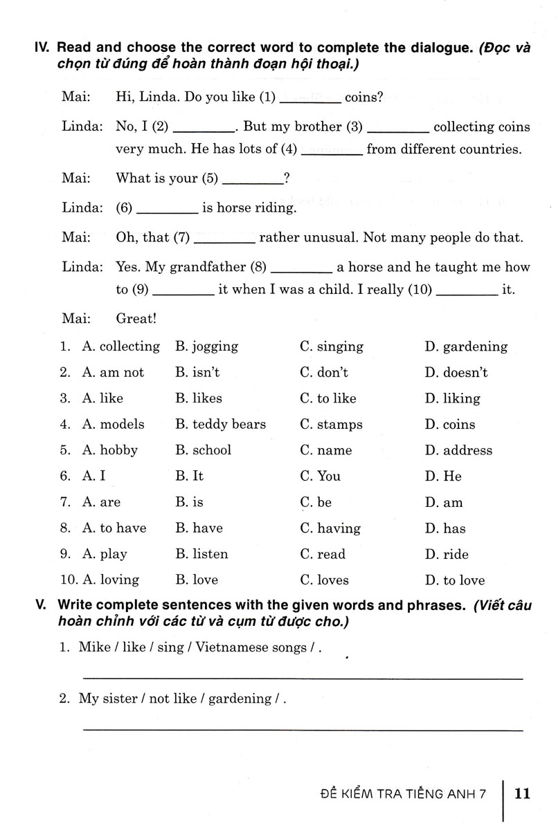 Đề Kiểm Tra Tiếng Anh 7 (Dùng Kèm SGK Kết Nối)