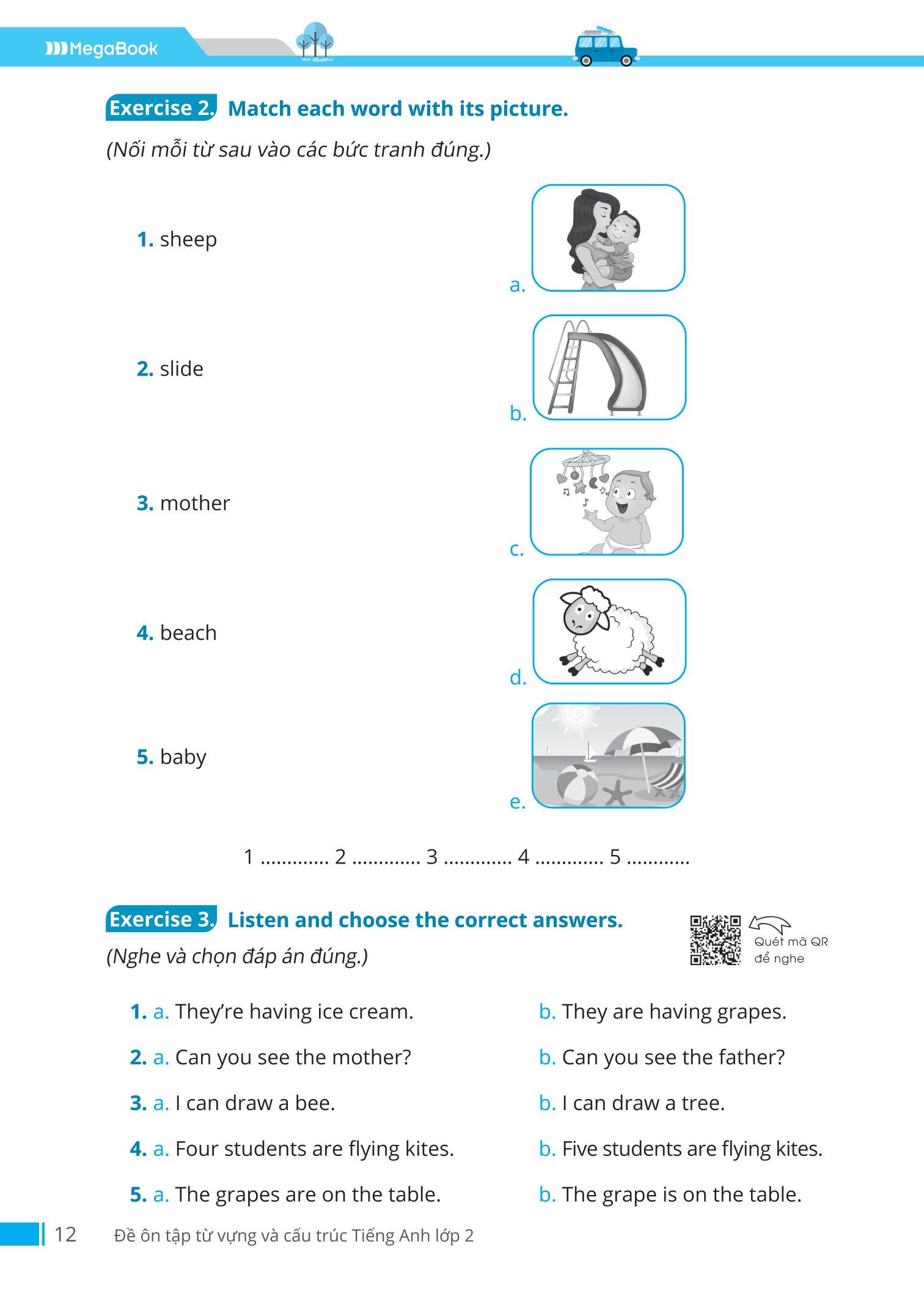 ✨Đề Ôn Tập Từ Vựng Và Cấu Trúc Tiếng Anh Lớp 2