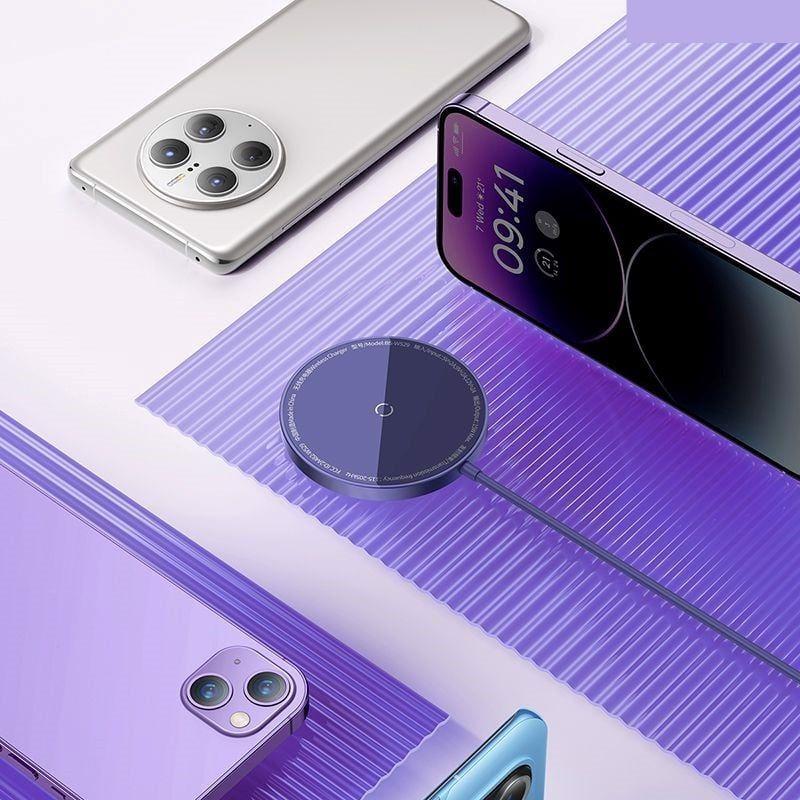 - Trọng lượng: khoảng 46.5g Baseus Simple Mini3 Wireless Charger là đế sạc không dây nhỏ gọn và sang trọng cho phép bạn sạc các thiết bị có khả năng sạc không dây Q.i và mag.safe. Với công suất đầu ra tối đa 15W, nó có thể cung cấp sạc nhanh cho các thiết bị của Ap.ple và And-roid. Bộ sạc có thiết kế từ tính cho phép thiết bị của bạn gắn vào và giữ chặt i-Phone trong khi sạc. Điều này làm cho việc sử dụng thiết bị của bạn trong khi đang sạc trở nên dễ dàng mà không cần phải lo lắng về việc thiết bị bị trượt khỏi đế sạc. Tùy chọn màu Galaxy tạo điểm nhấn màu sắc cho không gian làm việc hoặc tủ đầu giường của bạn, và kích thước nhỏ gọn giúp bạn dễ dàng mang theo khi di chuyển. Tổng thể, Baseus Simple Mini3 Wireless Charger là một lựa chọn tuyệt vời cho bất kỳ ai đang tìm kiếm một giải pháp sạc không dây nhanh chóng, tiện lợi và đẹp mắt cho các thiết bị của họ có khả năng sạc không dây Qi. Hình ảnh Đế Sạc Không Dây Baseus Simple Mini3 Wireless Charger 15W (Mag-netic Wireless Smart Charger Dùng Cho i-Phone 12 13 14 Series Air-pods 3 And-roind)