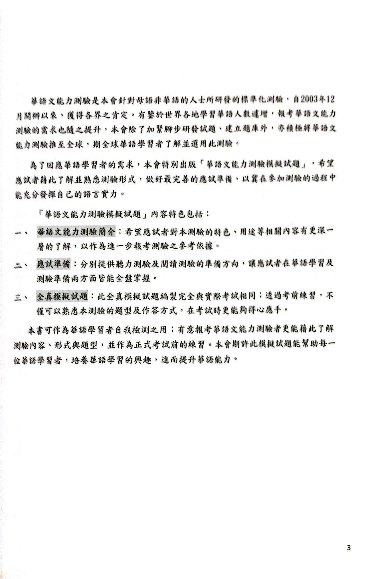 Những năm gần đây, số người mới học tiếng Hoa ngày càng tăng. Để giúp các học viên này có thể kiểm tra kết quả học tập của bản thân trong thời gian ngắn cũng như khích lệ họ tiếp tục học, chúng tôi đã chú tâm nghiên cứu và phát triển bài thi năng lực Hoa ngữ ở cấp độ chuẩn bị như xuất bản bộ đề thi mô phỏng ở cấp độ chuẩn bị. Bộ đề thi sẽ giúp các học viên mới học tiếng Hoa hiểu rõ hơn nội dung và cách thức thi đồng thời kiểm tra xem họ học có đúng phương pháp hay không.