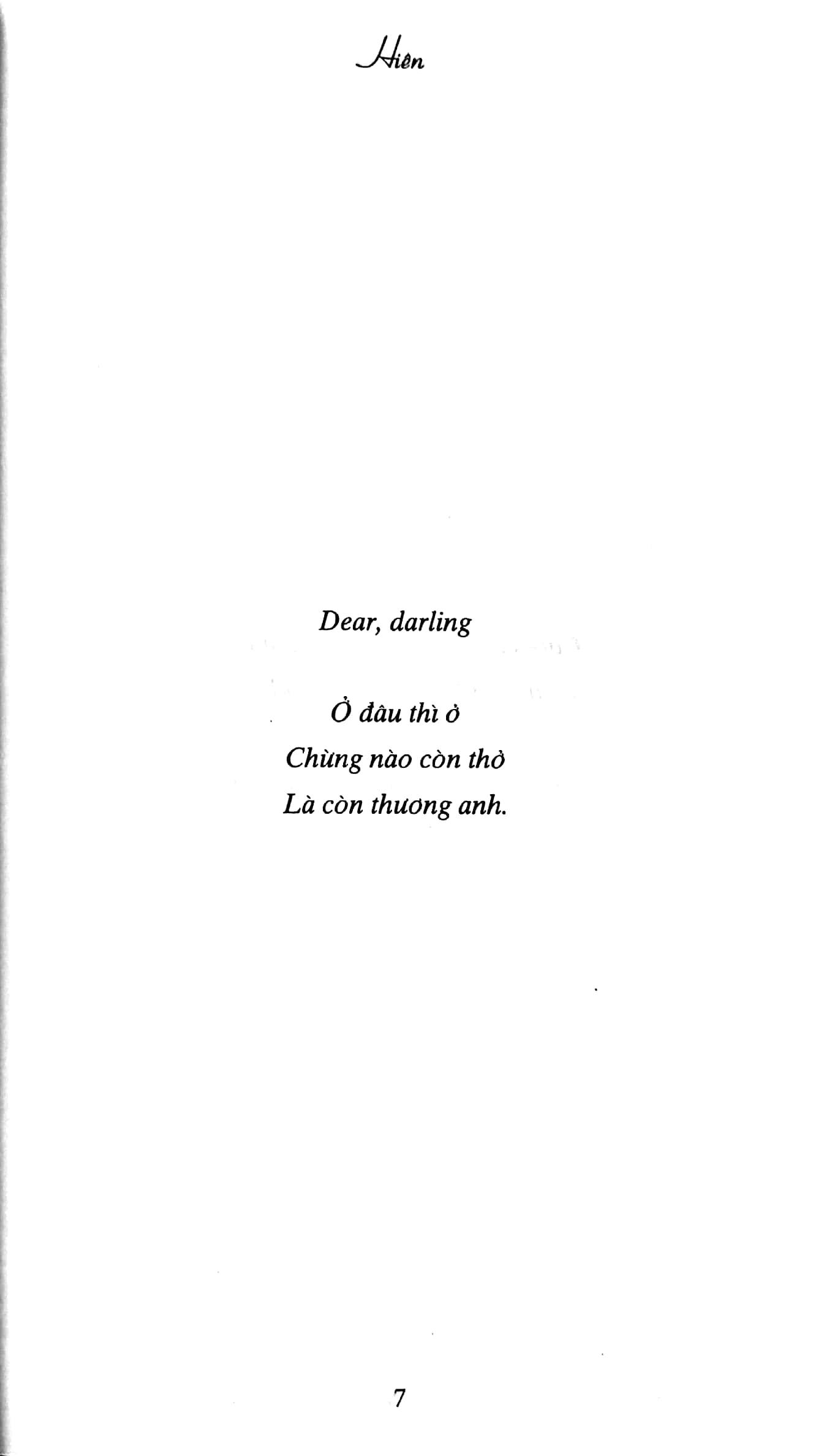 Cuốn sách kết nối những tâm hồn cùng rung cảm trước cái đẹp và có chung tần số hạnh phúc, yêu thương. Hiên ký thác tất cả niềm yêu sống, những ngày mạnh mẽ đi qua nỗi buồn và vẹn tròn tình cảm của mình lên mỗi câu chữ.