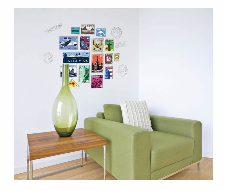 Decal dán tường Bộ sưu tập tem 3D với thiết kế độc đáo, sáng tạo, phong cách mà còn đầy ý nghĩa cho gia đình bạn