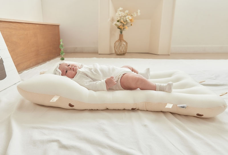 - Trên đệm có 4 đường cắt giúp phân bổ đều trọng lượng của em bé, mang đến sự thoải mái cho bé