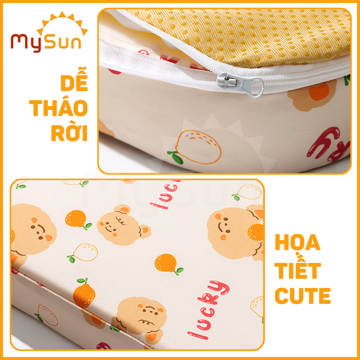 - Vỏ đệm tăng chiều cao có thể tháo rời thuận tiện để ba mẹ thay thế và giặt giũ.