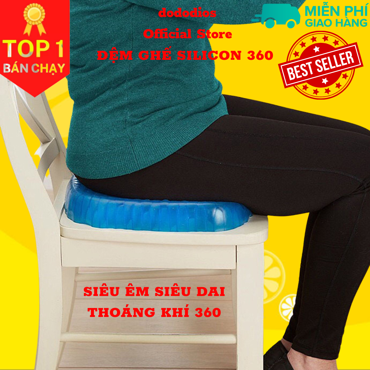 Đệm ngồi 3D Silicon cao cấp thoáng khí chống đau mỏi, Đệm Ngồi Thông Minh Lưu Thông Máu Thoáng Khí - Hàng Chính hãng dododios - Đệm (nệm) ngồi thông minh