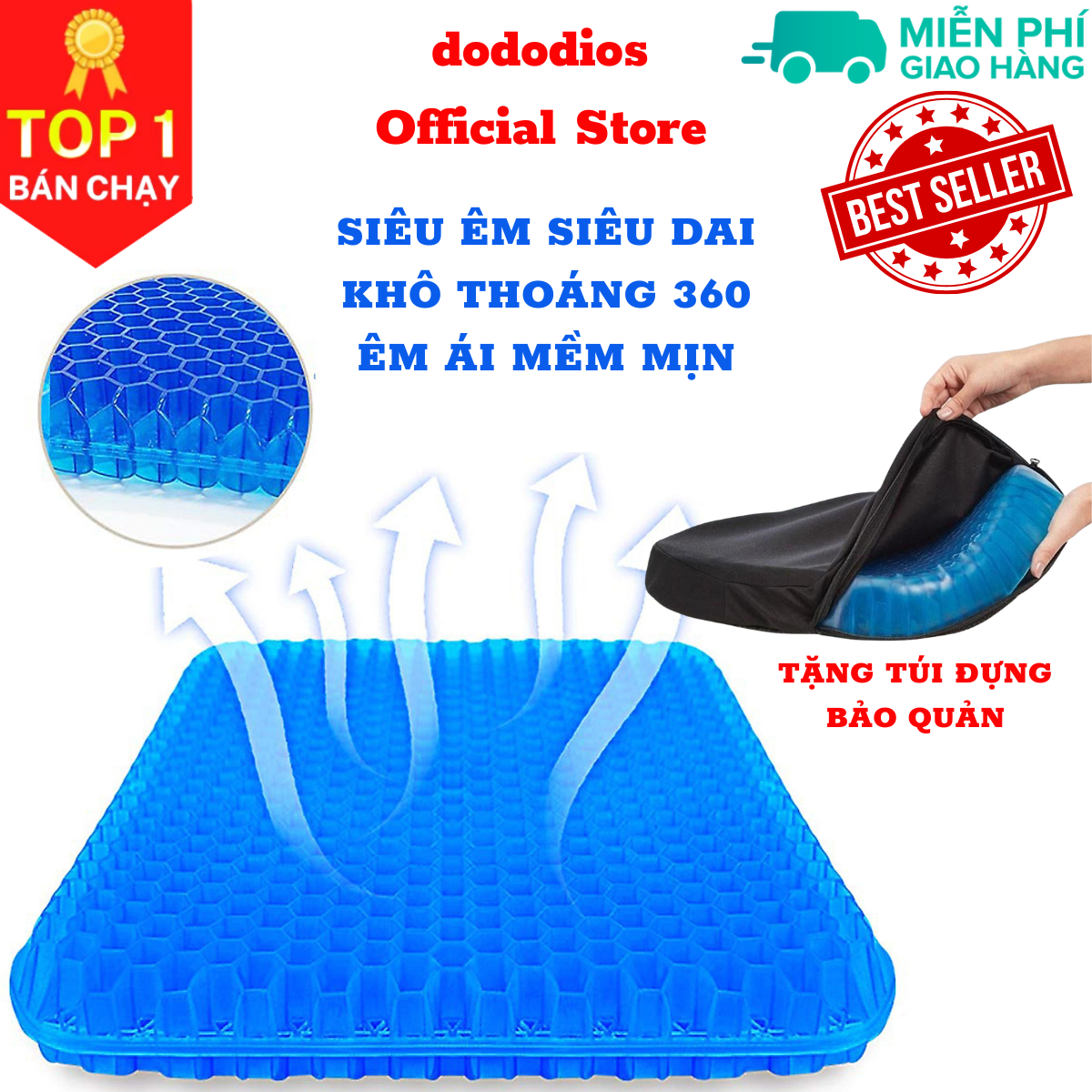 Đệm ngồi 3D Silicon cao cấp thoáng khí chống đau mỏi, Đệm Ngồi Thông Minh Lưu Thông Máu Thoáng Khí - Hàng Chính hãng dododios