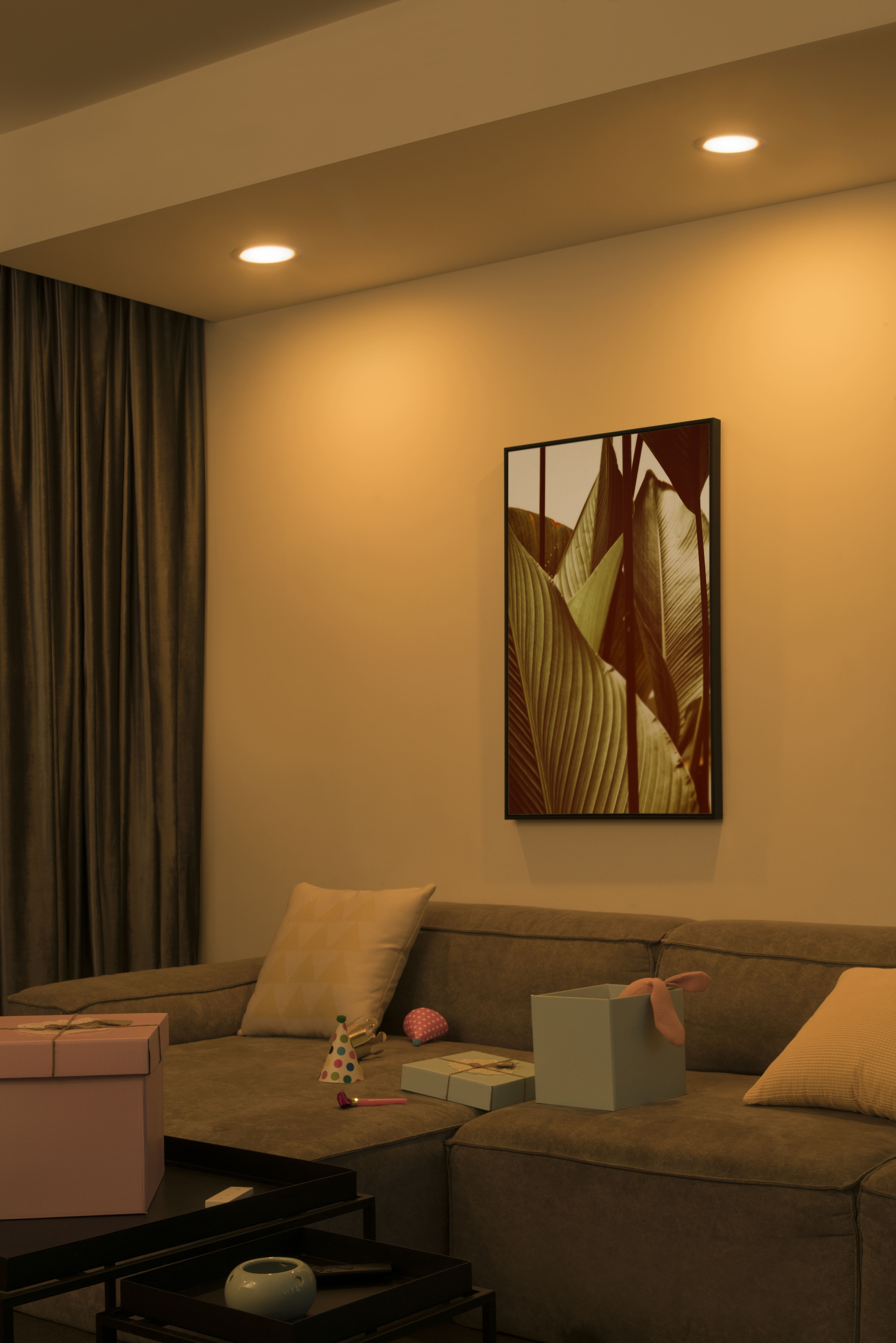 LED Downlight Philips Hue Đèn âm trần thông minh thế hệ mới Đèn LED Downlight Philips Hue Garnea thuộc dòng âm trần chất lượng cao, và có đầy đủ các tính năng của một bóng đèn thông minh. Đèn LED Downlight Philips Hue Garnea cho phép bạn điều chỉnh tắt/bật bóng đèn từ xa tại bất cứ nơi nào. Thay đổi độ sáng từ 1-100% và nhiệt độ màu từ vàng ấm – sáng trắng. Bạn có thể dễ dàng kiếm tra xem đèn đã tắt hay chưa, đồng thời cài đặt giờ hoạt động, thông báo, bằng ứng dụng Philips Hue trên điện thoại.        Hỗ trợ tối đa cho cuộc sống của bạn Không chỉ mang chức năng chiếu sáng cho ngôi nhà của bạn,  đèn LED Downlight Philips Hue Garnea còn là công cụ hỗ trợ cho mọi sinh hoạt trong cuộc sống. Với việc cài đặt từng ngữ cảnh đèn riêng biệt, bạn có thể lựa chọn màu đèn phù hợp cho từng mốc thời gian trong ngày của mình. Đặt đèn bật vào thời gian được cài đặt sẵn, vì vậy đèn sẽ sáng khi bạn về đến nhà. Bạn thậm chí có thể đặt lịch sáng lên vào những thời điểm khác nhau. Hơn thế nữa, ánh sáng từ đèn LED Downlight Philips Hue Garnea sẽ là công cụ xoá bỏ những căng thẳng cuộc sống cho bạn. Với màu sắc đèn tràn đầy năng lượng từ màu vàng ấm áp sang màu trắng tỉnh táo. Đồng thời, bạn cũng có thể chỉnh sắc đèn tối cho giờ ngủ. Ánh sáng đèn sáng ấm vừa phải, không ảnh hưởng giấc ngủ của bạn và hỗ trợ cho bạn ngủ sâu hơn.  Điều khiển đèn Philips Hue Garnera bằng giọng nói Đèn LED Downlight Philips Hue Garnea tương thích với hầu hết các nền tảng nhà thông minh hiện nay như: Apple HomeKit, Google Assistant, Amazon Alexa…Do đó bạn có thể điều khiển đèn LED Downlight Philips Hue bằng các trợ lý ảo như: SIri, Google Asisstant, Alexa… Bạn cũng có thể điều khiển đèn của bạn từ ứng dụng Philips Hue. Các câu lệnh rất đơn giản và thông dụng như: