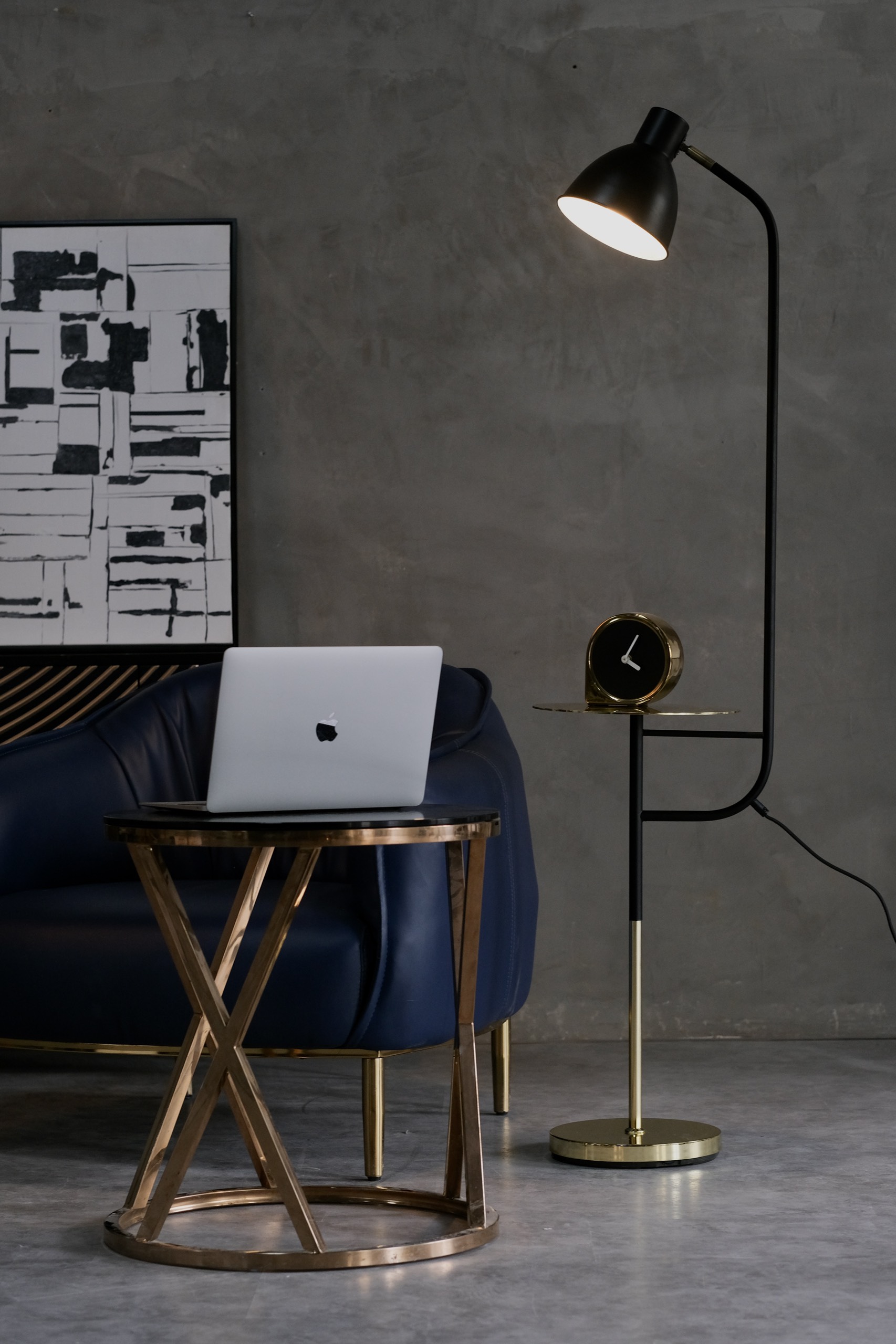 ✨Đèn cây đứng phòng khách kèm bàn màu đen - vàng sang trọng phong cách Châu Âu DCLA008