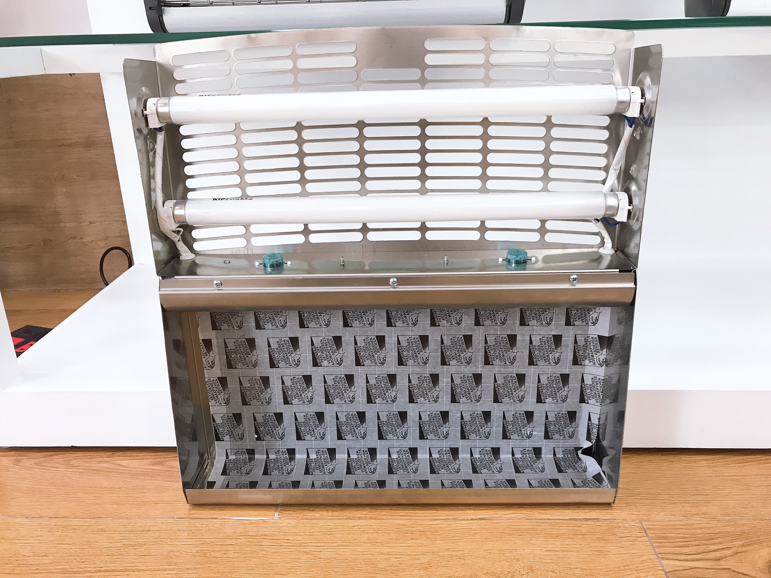 THÔNG SỐ KỸ THUẬT – Vỏ ngoài: Inox – Điện áp: 220V-50Hz – Bóng đèn:15W x 2 – Phạm vi: 75 m²- 90 m² (tham khảo) – Kích thước: 47 x 13 x 33 (cm)