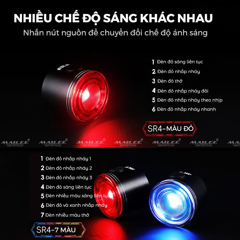 - Đèn Hậu Xe Đạp Thông Minh SR4 PRO Phanh Màu đỏ/ 7 Màu Sắc Chống Nước An Toàn Ban Đêm