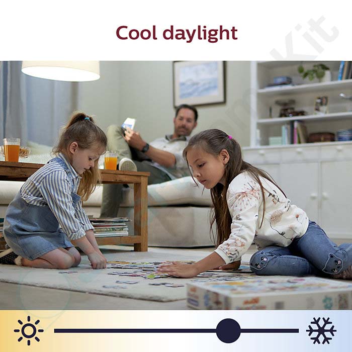 - Giao thức kết nối Wi-Fi 2.4GHz Đèn âm trần thông minh LED Downlight Wiz Đèn âm trần Wiz Tunable White có đầy đủ các tính năng của một bóng đèn thông minh. Với kết nối WiFi 2.4GHz, không cần trung tâm, việc sử dụng sẽ đơn giản hơn rất nhiều. Đèn LED Downlight Wiz cho phép bạn điều chỉnh tắt/bật bóng đèn từ xa tại bất cứ nơi nào. Bạn có thể dễ dàng kiếm tra xem đèn đã tắt hay chưa, tùy chỉnh độ sáng của đèn. Đồng thời cài đặt giờ hoạt động, thông báo, bằng ứng dụng WiZ trên điện thoại. Tùy chỉnh màu sắc và độ sáng đèn bằng điện thoại Đèn LED Downlight Wiz cho ánh sáng tỏa đều, ánh sáng đèn 2700k (sáng vàng) – 6500k (sáng trắng). Bạn có thể chỉnh màu đèn vàng ấm áp hơn cho phòng ăn. Hoặc đèn ánh sáng trắng hơn cho phòng đọc sách, phòng khách, phòng làm việc. Đồng thời, độ sáng đèn cũng dễ dàng điều chỉnh được chỉ bằng một thao tác trên điện thoại của bạn. Hỗ trợ tối đa cho cuộc sống của bạn Nếu bạn thường sử dụng đèn vào các khung giờ cố định, vậy hãy để các bóng đèn tự hoạt động. Bạn có thể đặt lịch để đèn tự động bật vào lúc 5h chiều. Khi đó bạn sẽ không cần phải đi bật từng công tắc trong nhà. Và bạn sẽ không phải về nhà trong tình cảnh căn nhà tối. Đặc biệt bạn có thể sử dụng các chức năng Progressive để hỗ trợ giấc ngủ. Khi đó đèn sẽ tự động sáng dần trong 30′ (Wake up) hoặc tối dần và tắt sau 30′ (Sleep). Hoặc sử dụng chức năng Rhythms để tạo ra quy trình ánh sáng cho một ngày hoạt động của bạn. Chức năng này rất hữu ích khi cả gia đình bạn cùng đi du lịch. Hãy thiết lập lịch hoạt động cho các bóng đèn để trông giống như luôn có người ở nhà. Điều khiển đèn bằng giọng nói Khi bạn có một trong các thiết bị hỗ trợ Trợ lý ảo như: Google Nest Mini, Google Nest HUB, Amazon Echo Dot…Bạn hoàn toàn có thể sử dụng để điểu khiển đèn WiZ Lightstrip bằng giọng nói. Chỉ cần liên kết tài khoản của bạn với các nền tảng sẵn có. Vậy là bạn đã có thể sử dụng giọng nói của mình để điều khiển từ xa. Kích thước cho từng phân loại
