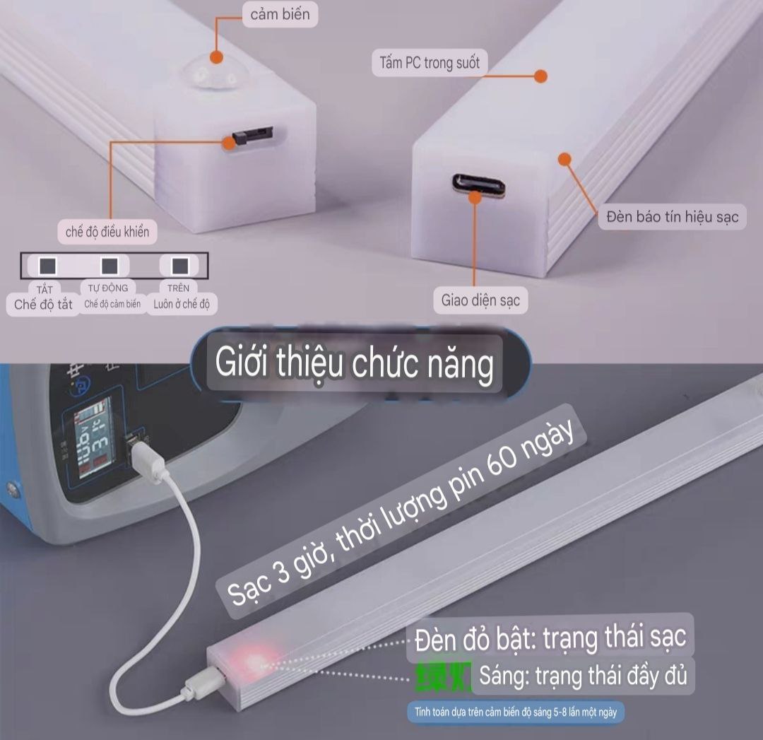 Mua tại TiktokĐÈN LED KHÔNG DÂY 20CM - 2W CẢM BIẾN THÔNG MINH GẮN TƯỜNG NGĂN TỦ BÀN ĐỌC SÁCH LỐI ĐI ĐÊM CHO NGƯỜI GIÀ NGƯỜI YẾU ĐÈN LED GẮN TƯỜNG CẢM BIẾN THÔNG MINH ĐA CHỨC NĂNG MÔ TẢ SẢN PHẨM KT 20 x 2 x 2CM ÁNH SÁNG CHẾ ĐỘ LED TRẮNG 1 ĐẦU SẠC DÂY USB 1 ĐẦU NÚT ĐIỀU CHỈNH ÁNH SÁNG NÚT MỞ TẮT HOẶC CHẾ ĐỘ ÁNH SÁNG NHẬN DIỆN CẢM BIẾN NHIỆT TỰ MỞ TẮT ĐÈN CÓ SẴN GỒM 1 DỀN LED - 01 DÂY SẠC USB VÀ 2 MIẾN DÁN HÍT NAM CHÂM
