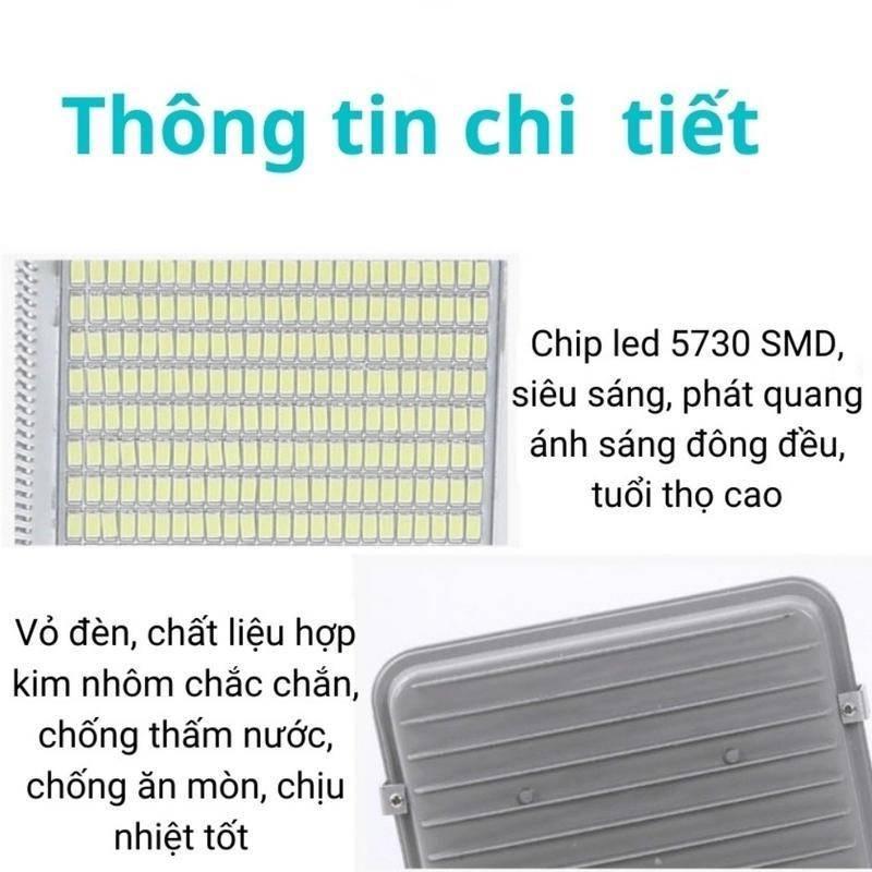 - Thời gian sạc 6-8 tiếng nắng, Hiệu suất sạc pin ~30% vào những ngày mây mù Đèn năng lượng mặt trời 300W có ánh sáng trắng, Diện tích chiếu sáng từ :200-300m2