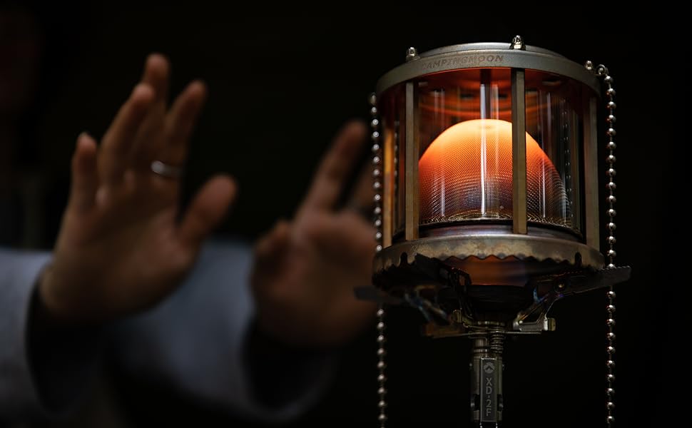 - Chất liệu: Khung: Đồng thau, Lưới: Thép không gỉ, Kính thủy tinh, Túi đựng: Canvas Đèn sưởi gas Campingmoon NX-90 phát ra tia hồng ngoại xa khi được làm nóng bằng đầu đốt. Chất liệu được làm bằng đồng thau nguyên khối từ khung đến vít, tạo nên vẻ đẹp lộng lẫy. Bạn cũng có thể tận hưởng sự đổi màu độc đáo của đồng thau. Nhỏ gọn và di động, chỉ cần đặt đốt lên và sử dụng. Nó không sử dụng điện nên rất tốt cho việc phòng chống thiên tai và cắm trại Lưu ý: Sử dụng ngoài trời. Có nguy cơ cháy, nổ do bình ga quá nóng. Ngoài việc sử dụng lâu dài bạn hãy nhớ sử dụng tấm che hoặc tấm chắn nhiệt để tránh hiện tượng lon ga bốc lên