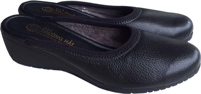 Giày đế xuồng 5cm bigsize hở mũi Trường Hải da bò thật