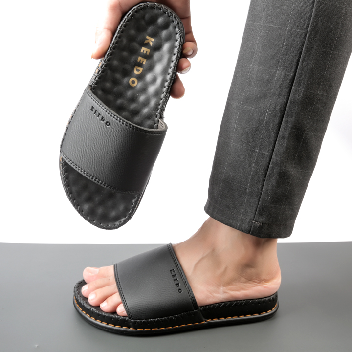 ✨Dép da nam quai ngang cao cấp đế massage KEEDO KD0611