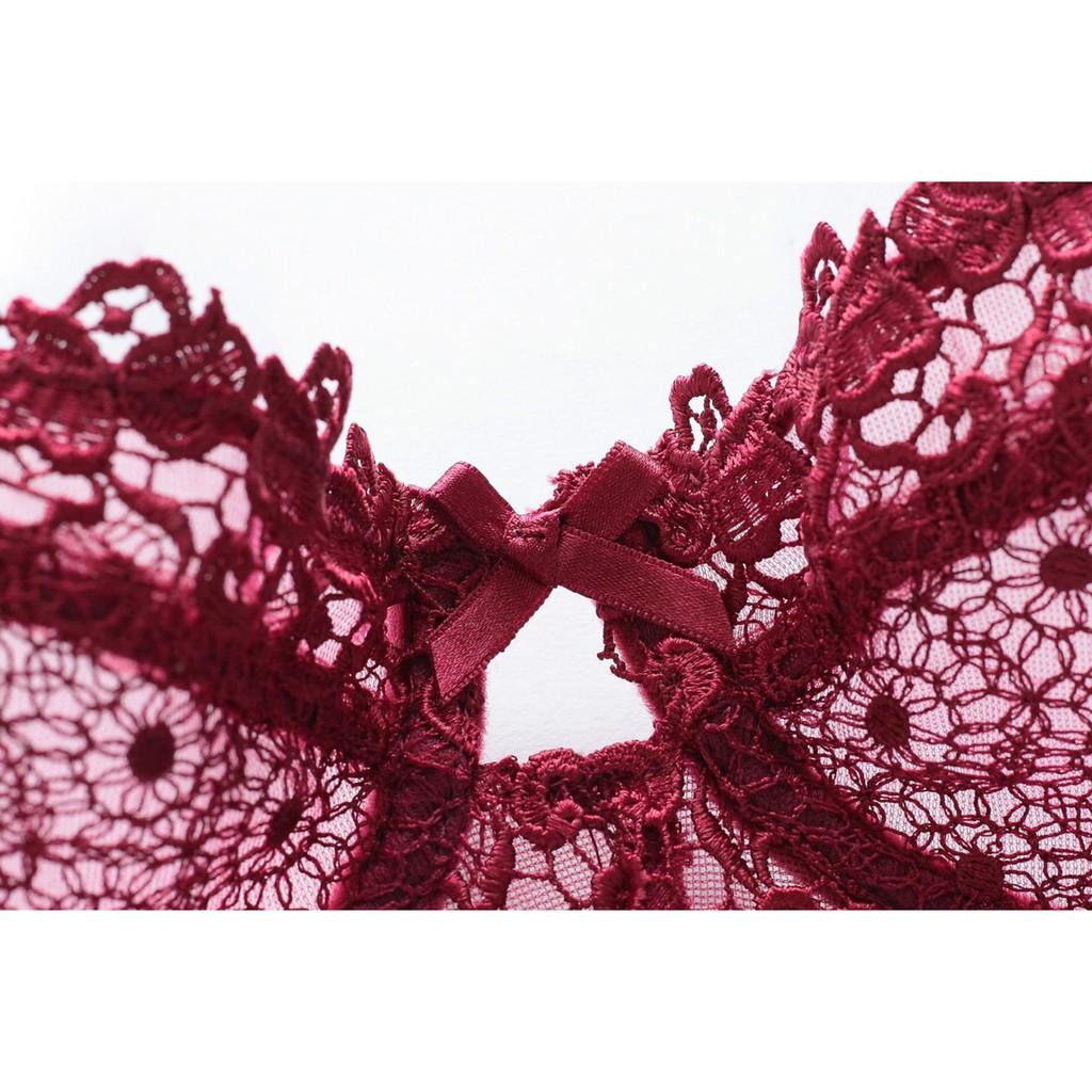 chất ren thoải mái thân thiện với làn da nhạy cảm nhất,kết hợp với vải cotton thoáng khí thoải mái với lớp lót áo sợi lưới thiết kế dây đeo vai rất phù hợp, sườn đàn hồi tốt, có 2 hàng và 3 nút khóa cài . Đáy quần có 2 lớp với lớp vải cotton khoáng khi hút ẩm tốt.