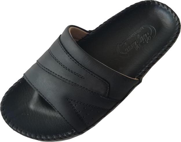 Dép da nam Quai ngang một bản da bò thật màu đen đế cao 2.5cm chính hãng Trường Hải DNĐ157
