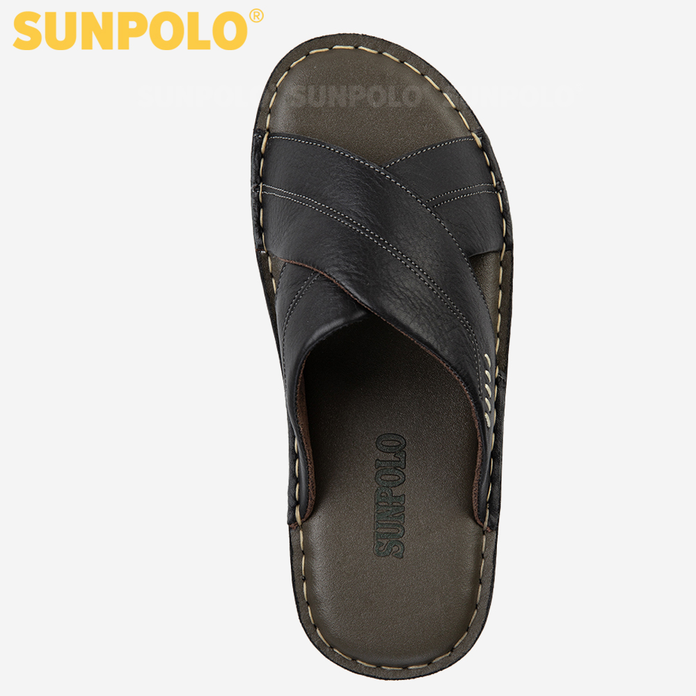 ✨Dép Nam Quai Chéo Da Bò Cao Cấp SUNPOLO AQC026 (Đen)