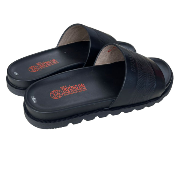 Dép da nam Quai ngang một bản da bò thật màu đen đế cao 2.5cm chính hãng Trường Hải DNĐ157