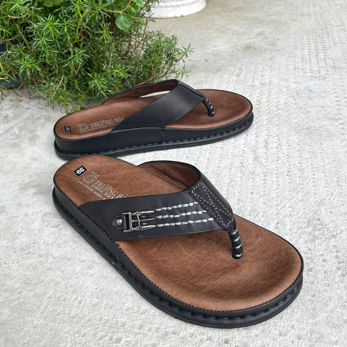 Dép nam xỏ ngón đế âm da bò thật Trường Hải