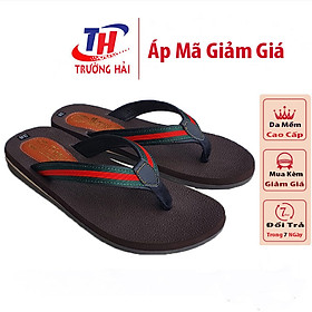 Dép nữ xỏ ngón Trường Hải da bò phối vải đơn giản trẻ trung XN111 Dép có dáng form chuẩn ôm chân, thiết kế đơn giản dễ dàng sử dụng
