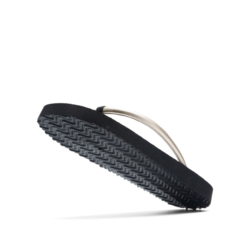 Thiết kế: • Phong cách tối giản nhưng tinh tế, quai dép ánh kim sang trọng tạo điểm nhấn nổi bật. • Form dép gọn gàng, phù hợp với dáng chân nữ, giúp tôn lên đôi chân thon dài.