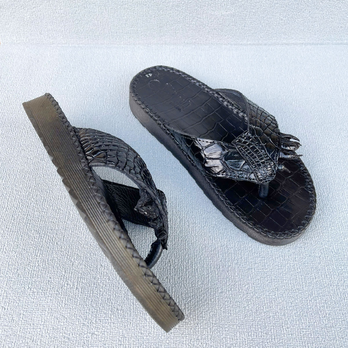 Dép xỏ ngón nam da cá sấu đế cao 3cm may viền có móng sang trọng DCS201 THÔNG TIN CHI TIẾT: Quai dép làm bằng da cá sấu, với họa tiết móng cá sấu đặc