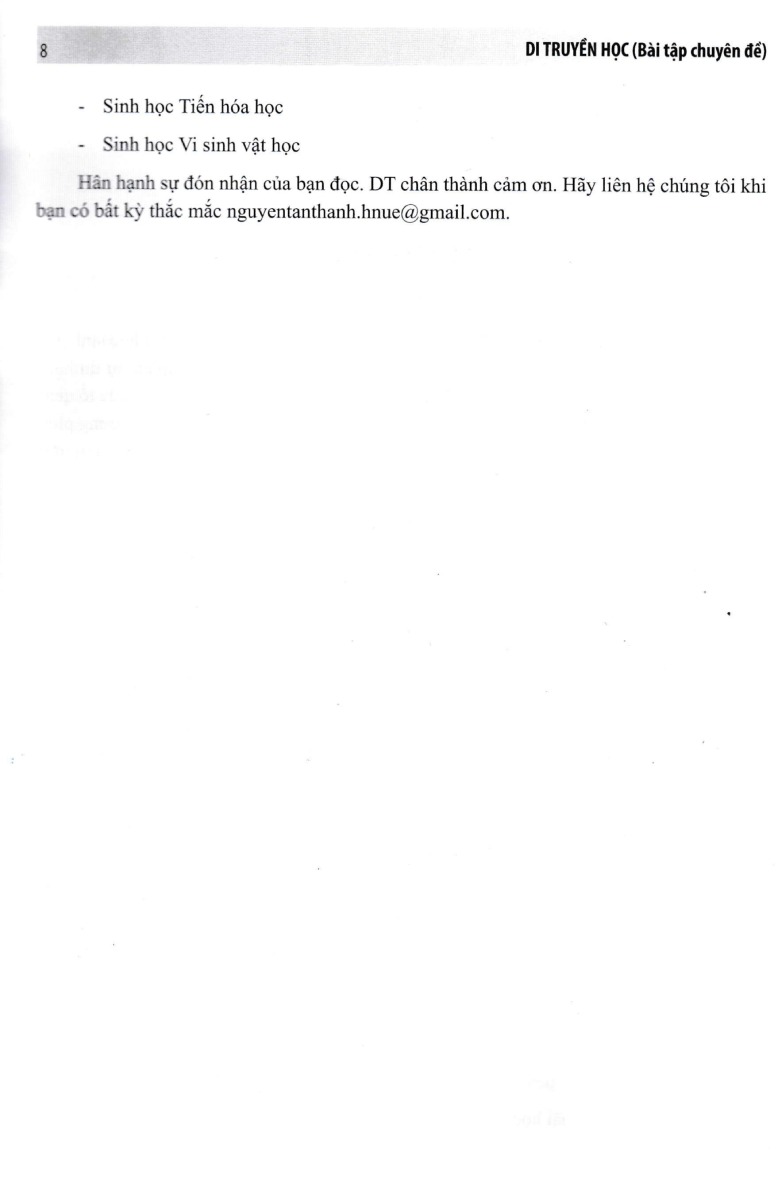 Đồng thời sách Di truyền học – Bài tập chuyên đề cũng là tài liệu tham khảo hữu ích cho thầy cô giáo và các bạn sinh viên chuyên ngành sinh học.