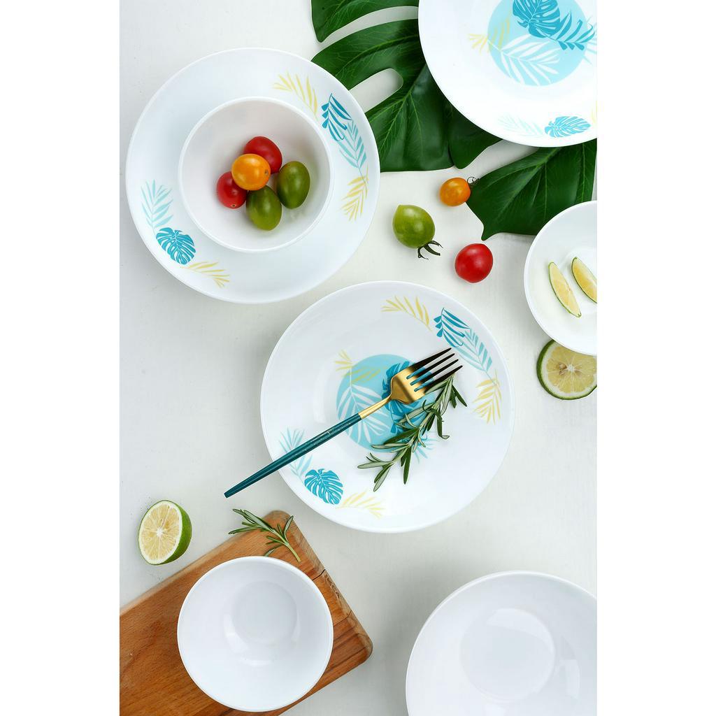 - Đặc tính nổi bật: cường lực, kháng vỡ nhiều lần so với thuỷ tinh thông thường. Thiết kế lá mostera nhiệt đới tạo cảm giác mát mẻ cho bàn ăn.