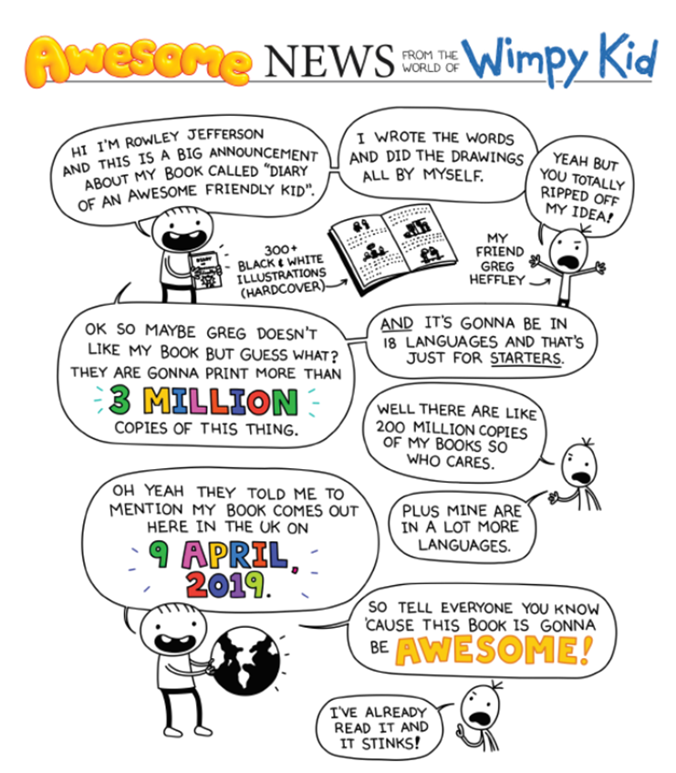 The opening of Diary of an Awesome Friendly Kid will originally be published as a World Book Day 2019 title - Diary of Greg Heffley's Best Friend.