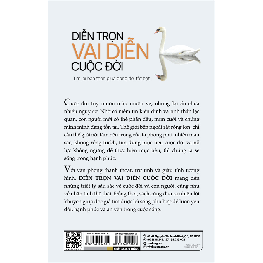 Mua tại TiktokCuộc đời tuy muôn màu muôn vẻ, nhưng lại ẩn chứa nhiều nguy cơ. Nhờ có niềm tin kiên định và tinh thần lạc quan, con người mới có thể phấn đấu, mỉm cười và chứng minh mình đang tồn tại. Thế giới bên ngoài rất rộng lớn, chỉ cần thế giới nội tâm bên trong của ta phong phú, nhiều màu sắc, không rỗng tuếch, tìm đúng mục tiêu cuộc đời và nỗ lực không ngừng để thực hiện mục tiêu, thì chúng ta sẽ sống trong hạnh phúc. Với văn phong thanh thoát, trữ tình và giàu tính tượng hình, Diễn trọn vai diễn cuộc đời mang đến những triết lý sâu sắc về cuộc đời và con người, cũng như về nhân tình thế thái. Đồng thời, sách cũng đưa ra nhiều lời khuyên giúp độc giả tìm được lối sống phù hợp để luôn yêu đời, hạnh phúc và an yên trong cuộc sống.