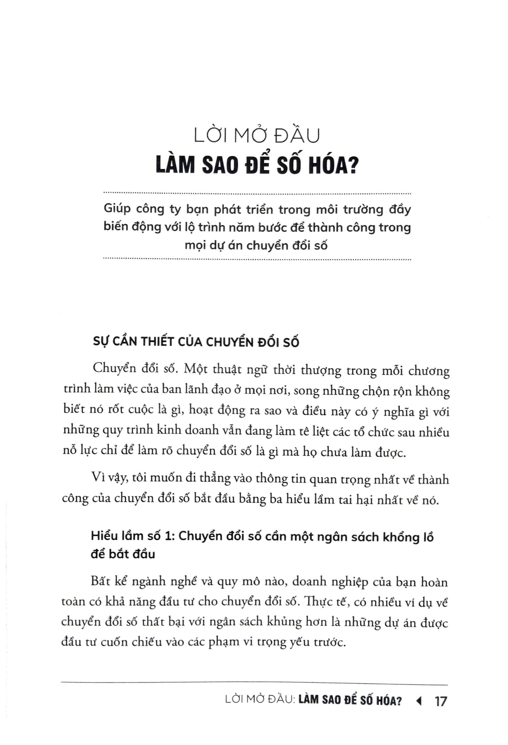 Tuy nhiên để làm được điều đó, bắt buộc các bên hợp tác đều cần có cái nhìn toàn diện để hiếu đúng, đánh giá đúng về chuyển đổi số. Tôi rất vui được giới thiệu tới các bạn cuốn sách chia sẻ kinh nghiệm “thực chiến” cho quá trình Chuyển đổi số của tác giả Lindsay Herbert- người phụ trách chuyển đổi số tại IBM, trực tiếp chỉ đạo các dự án đổi mới quy mô lớn trên toàn cầu trong mọi lĩnh vực tổ chức, đồng thời là diễn giả nổi tiếng trong lĩnh vực chuyển đổi số. Các bạn sẽ được tham gia vào một buổi thảo luận chi tiết về năm giai đoạn cơ bản của quá trình chuyển đổi số, đó là: