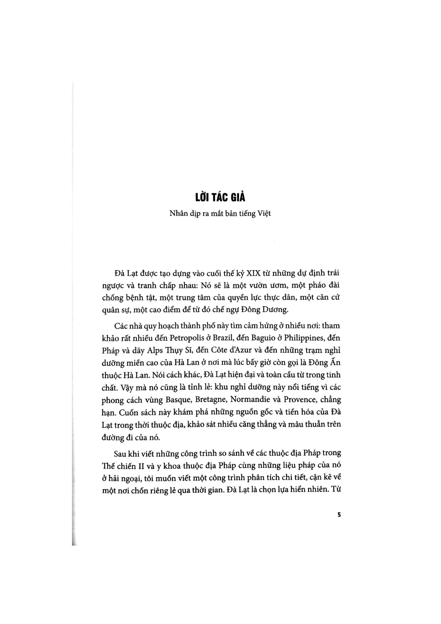 Một bức tranh đủ độ bao quát, tường tận, sống động và thú vị về lịch sử một thành phố. Cuốn sách không thể thiếu với những người yêu Đà Lạt.
