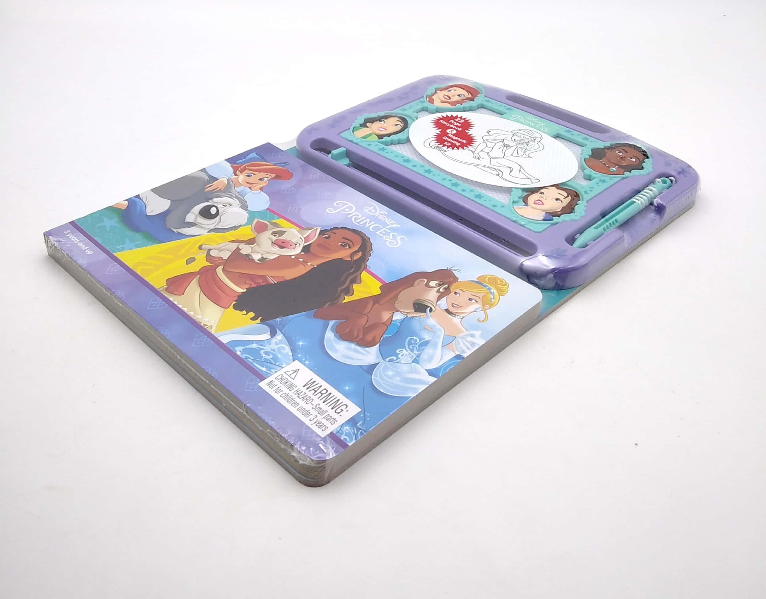 Jump into exciting adventures with the Disney Princesses and their favourite animal friends. Read the Colorful storybook and learn to draw a royal gallery of the princesses most loyal companions. Complete with step-by-step instructions, a drawing pad, and a reusable magnetic pen, children will have fun developing fine motor skills in the company of familiar faces, including Merida, Snow White, Moana, Pocahontas, Tiana, Mulan, Cinderella, Jasmine, and more! The magnetic drawing pad is erasable, so little artists can enjoy the book again and again. Draw on!
