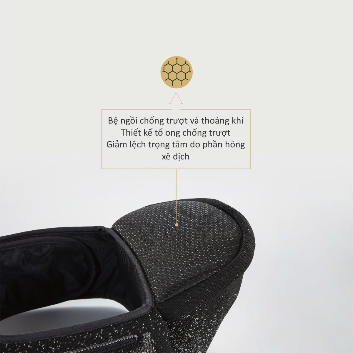 - Bệ ngồi chống trượt và thoáng khí: Thiết kế vải tổ ong chống trượt làm giảm lệch trọng tâm do phần hông xê dịch.