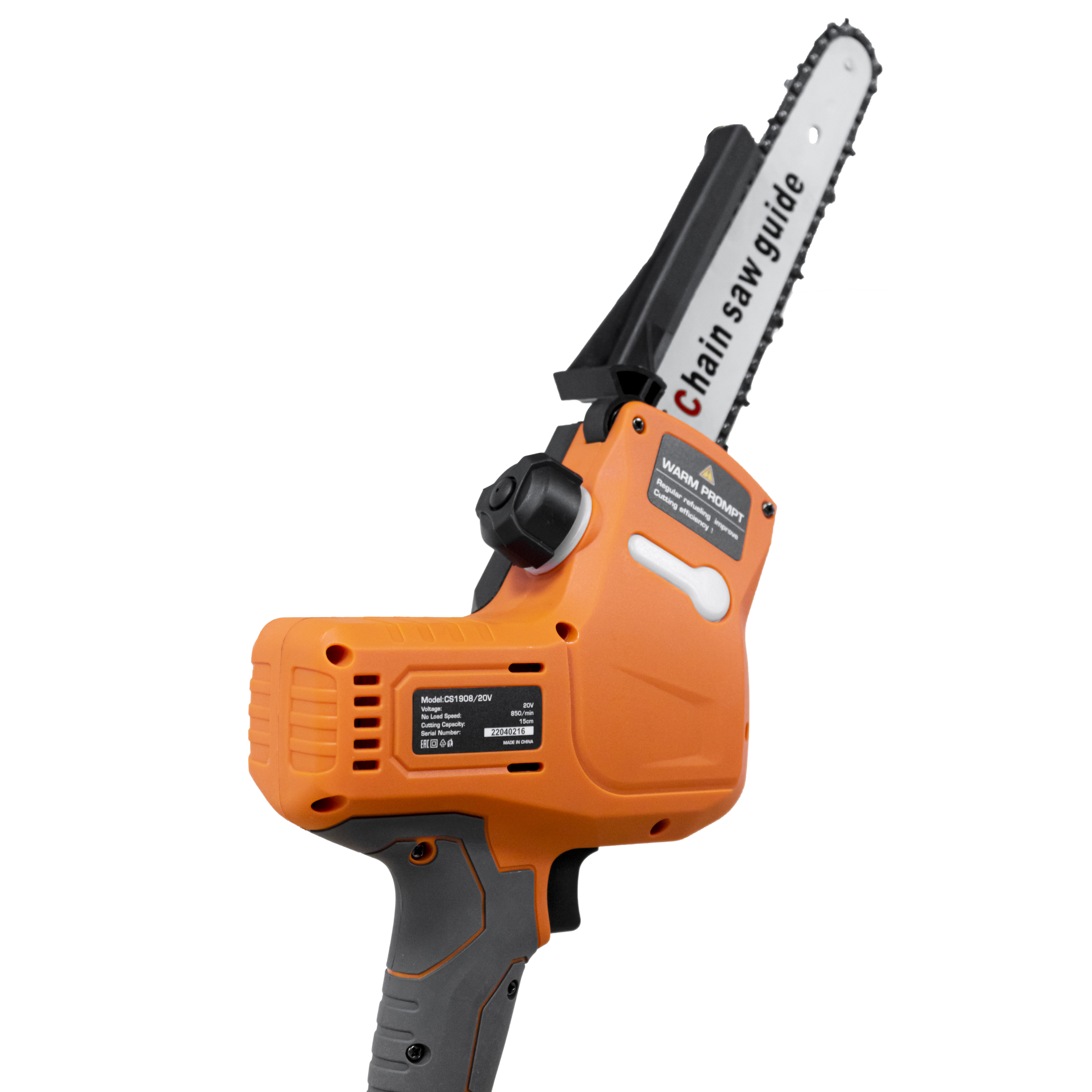 Thiết bị có chiều dài lưỡi lam là 150mm, bước răng là 3/8", hoạt động với tốc độ xích đạt 5 m/phút giúp cắt thân cây gỗ nhỏ và vừa nhanh chóng.