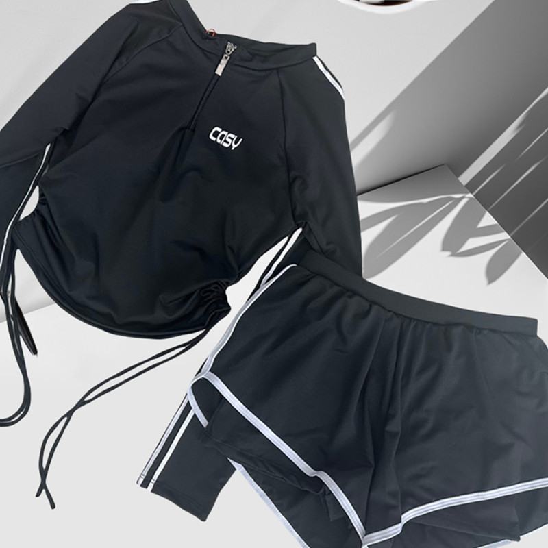 Đồ bơi nữ kín đáo set đi tắm biển bộ đồ bơi 2 mảnh áo dài tay chống nắng kèm quần đùi phong cách thể thao Màu : Đen ,trắng Phong cách: Giản dị Chất