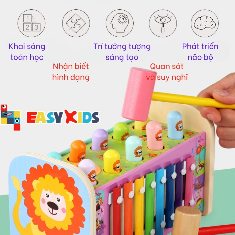Đồ Chơi Đập Chuột Cho Bé Có Đàn Gõ Nhạc Hình Sư Tử, Đồ Chơi Giáo Dục Đa Năng Montessori Chào mừng các phụ huynh đam mê sự phát triển của trẻ, Đồ Chơi Giáo Dục Đa Năng Montessori Đập Chuột Gỗ không chỉ là một đồ chơi giải trí mà còn là công cụ giáo dục độc đáo giúp bé phát triển nhiều kỹ năng quan trọng. Phương Pháp Montessori Chất Lượng: Thiết kế theo phương pháp Montessori, đồ chơi này khuyến khích sự sáng tạo và tư duy logic của bé. Bé không chỉ đập chuột mà còn học cách tập trung, kiên nhẫn và phối hợp tay mắt. Chuột Gỗ Đa Dạng và Đẹp Mắt: Với nhiều loại chuột gỗ với hình dáng và màu sắc đa dạng, bé sẽ không chỉ trải nghiệm niềm vui đập chuột mà còn phát triển khả năng quan sát và phân loại. Mỗi chiếc chuột đều là một cơ hội mới để học hỏi. Kích Thích Sự Tự Chủ: Việc bé có thể tự do chọn chuột và đập chúng vào lỗ không chỉ giúp phát triển sự tự tin mà còn là cơ hội để bé tự quản lý và quyết định trong quá trình chơi. Chất Liệu Gỗ Tự Nhiên An Toàn: Chúng tôi chú trọng đến sự an toàn và chất lượng, nên sản phẩm được làm từ gỗ tự nhiên không gây hại cho sức khỏe của trẻ. Chất liệu bền bỉ giúp đồ chơi tồn tại qua thời gian và sự sáng tạo không ngừng của bé. Chơi Cùng Gia Đình và Bạn Bè: Sự đa dạng về hình dáng và màu sắc của các chuột làm cho đồ chơi trở thành hoạt động giáo dục thú vị cho cả gia đình và bạn bè của bé. Mang đến cho bé một trải nghiệm giáo dục đa chiều và vui nhộn với Đồ Chơi Giáo Dục Đa Năng Montessori Đập Chuột Gỗ. Đặt hàng ngay hôm nay để khám phá thế giới mới của sự sáng tạo và học hỏi! Thông tin sản phẩm: