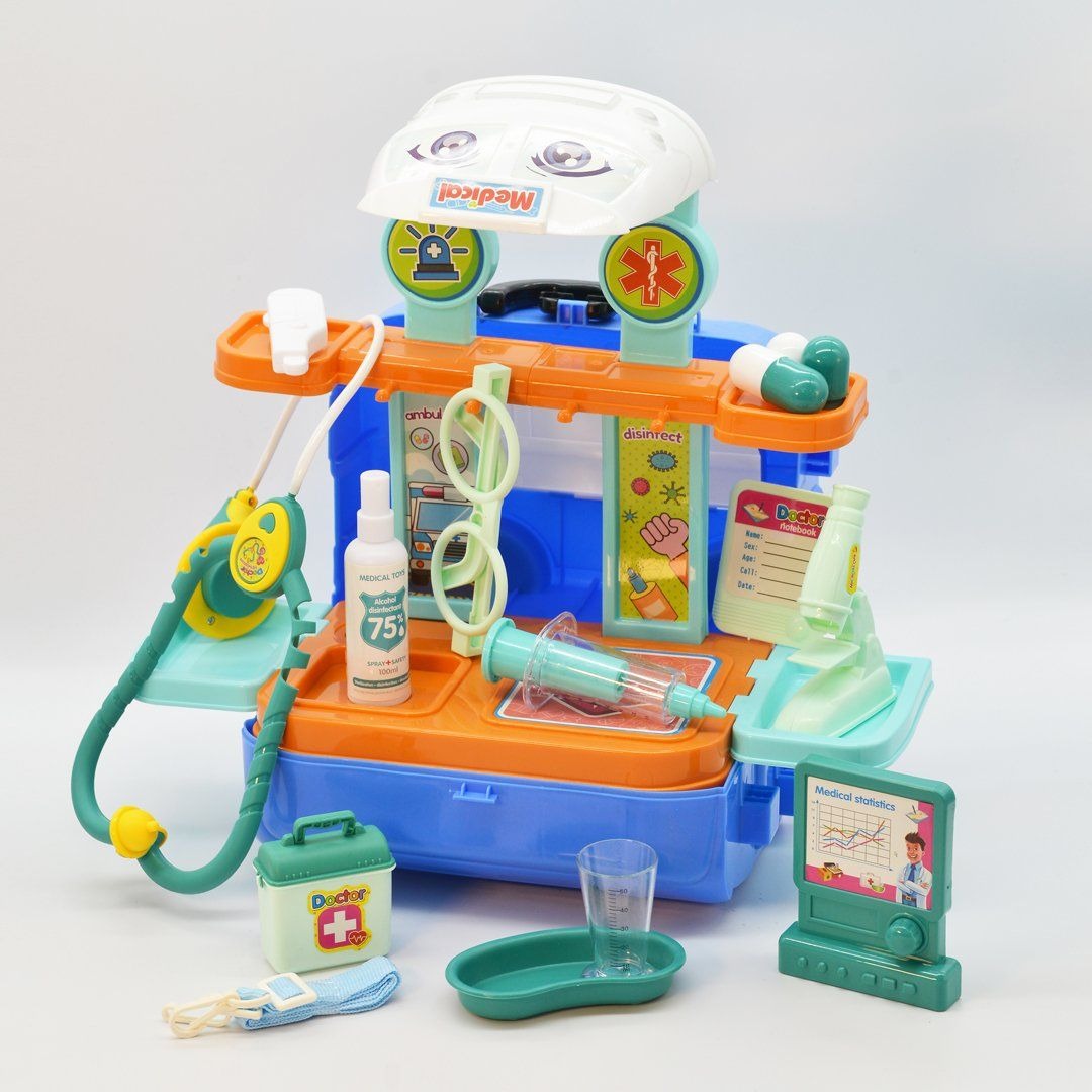 Mua tại TiktokBộ đồ chơi là sản phẩm đồ chơi trẻ em được thiết kế có mô hình chiếc xe ngộ nghĩnh, mô phỏng chiếc xe khám bệnh lưu động để phục vụ nhân dân ,..với nhiều chi tiết mô tả các dụng cụ khám chữa bệnh của bác sĩ, y tá.. màu sắc bắt mắt, kiểu dáng xinh xắn phù hợp cho cả bé trai và bé gái thỏa sức vui chơi, sáng tạo nhập vai thành người bác sĩ và cô y tá khám chữa bệnh cho các bệnh nhân. Bộ đồ chơi giúp trẻ nhận biết về sức khỏe, vệ sinh và định hướng nghề nghiệp trong tương lai. Khi chơi trò chơi sẽ giúp cho trẻ: