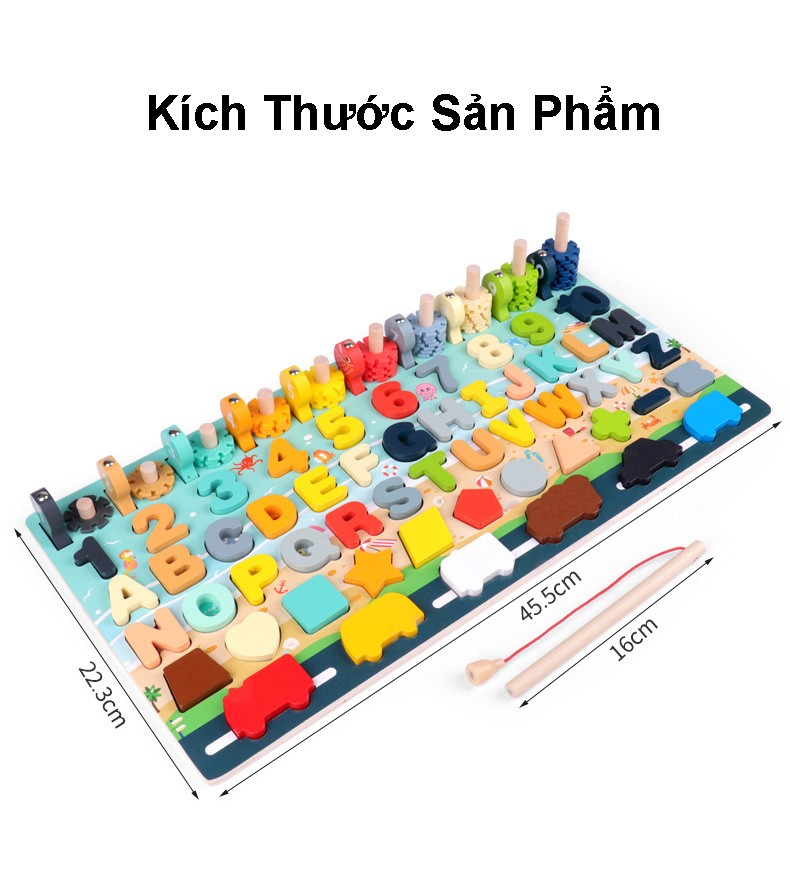 Mua tại TiktokĐồ Chơi Gỗ, Bảng Gỗ Thông Minh 6IN1 Đồ Chơi Giúp Bé Phát Triển Trí Não Giáo Dục Theo Phương Pháp Montessori Chất liệu: Gỗ. Kích thước: 45,5cm x 22,3cm. Bộ đồ chơi gồm có: Bộ xếp hình được trang bị 10 hình dạng phổ biến. Bộ số từ 1 đến 10 và các ký hiệu +,-,= Bộ bảng chữ Tiếng Anh Bộ đồ chơi câu cá. Bộ thả vòng. Bộ đồ chơi giúp bé tăng khả năng nhận biết hình dạng, màu sắc. Giúp bé làm quen với những con số cơ bản. Màu sắc tươi sáng, sản phẩm được gia công tỉ mỉ không góc cạnh an toàn cho bé.