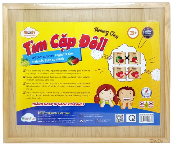 - Trò chơi tìm cặp đôi gỗ hình trái cây Woody với chất liệu gỗ an toàn, các cặp hình được làm giống nhau tạo cho bé thỏa sức vui chơi.
