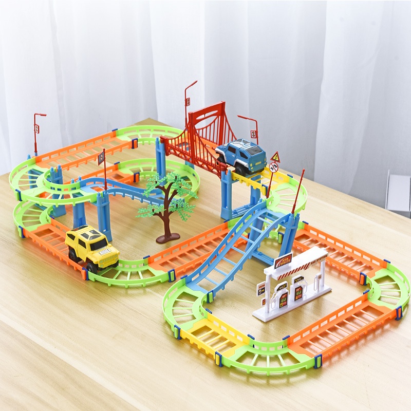 bộ đồ chơi ô tô vượt cầu, chạy trên đường ray( hướng dẫn cách lắp)