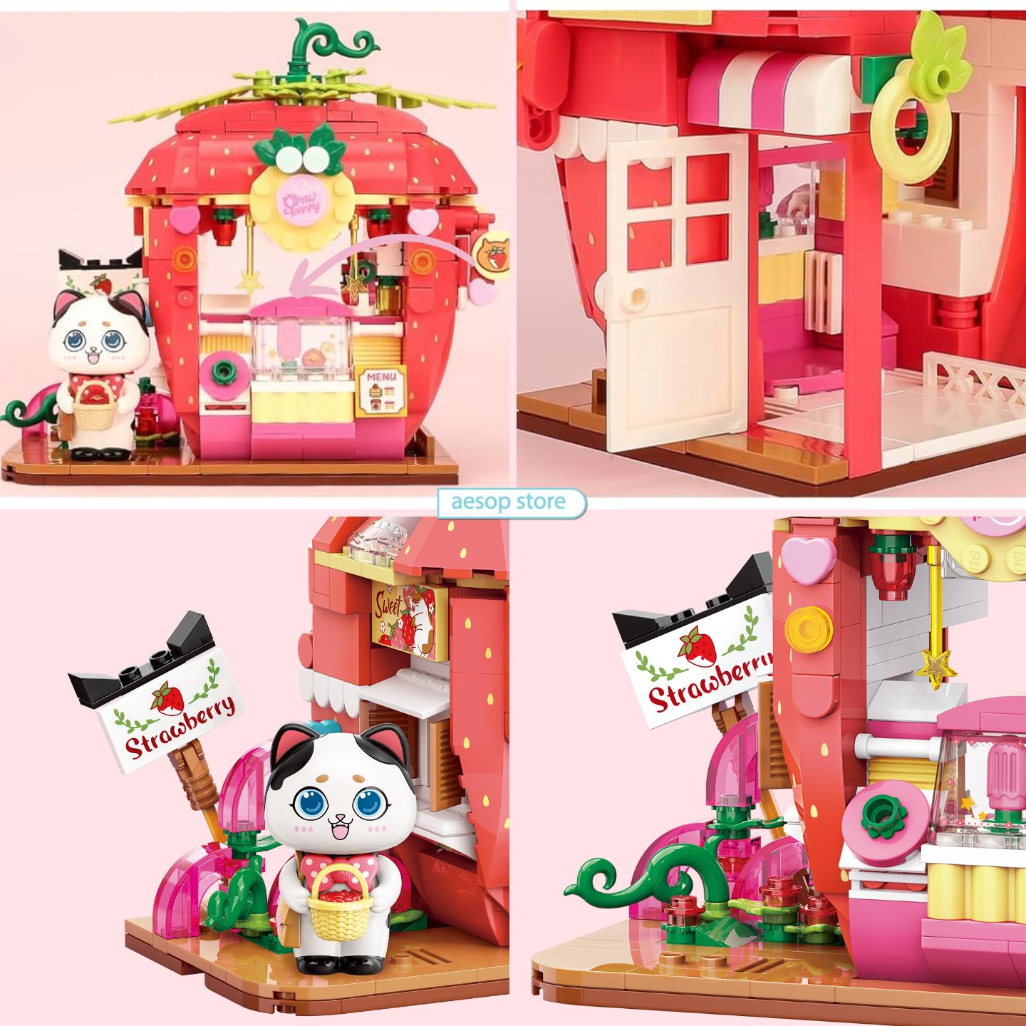 Đồ chơi có thể lắp ráp tạo thành mô hình Cửa hàng Dâu tây như sách hướng dẫn nhưng cũng có tự tạo nên mô hình mới theo trí tưởng tượng, khả năng sáng tạo của người chơi. Mang đến sự mới lạ, hứng thú