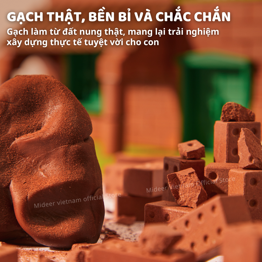 - GẠCH THẬT, BỀN BỈ VÀ CHẮC CHẮN Là đồ chơi nhưng gạch được làm từ đất nung thật, mang lại trải nghiệm xây dựng thực tế tuyệt vời cho con.