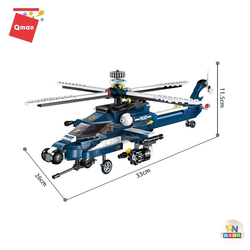 ✨Đồ chơi lắp ráp, xếp hình Qman 1801 - Trực thăng chiến đấu - 381 mảnh ghép
