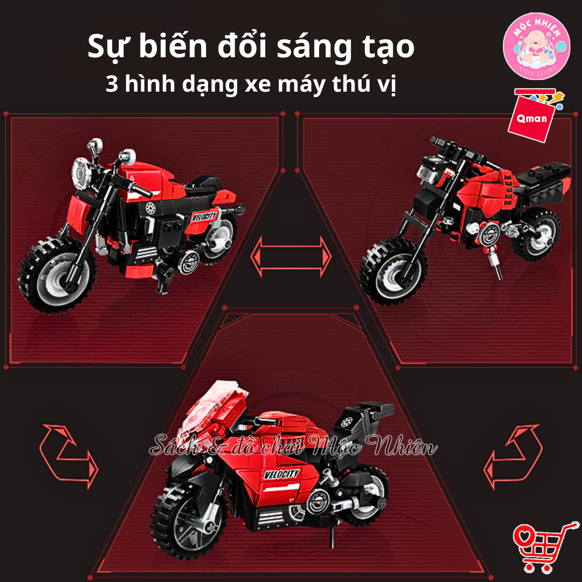 Thông tin sản phẩm: Đồ chơi - QMAN - 42114 Bộ đồ chơi xếp hình mô hình Mô tô thể thao - Kích thước: 8.5 x 8 x 5 cm - Chất liệu:Nhựa ABS -