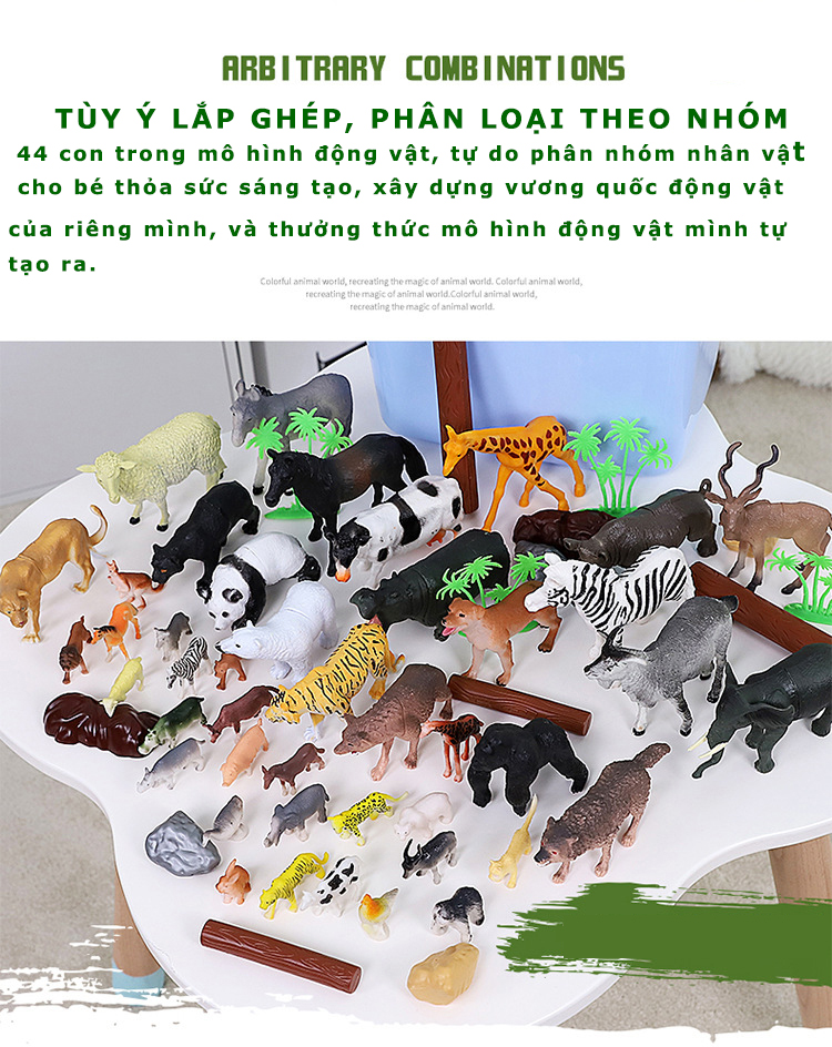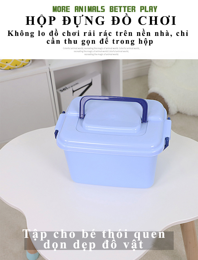 Sản phẩm là từ nhựa cao cấp an toàn các bậc phụ huynh yên hơn. Các chi tiết được vẽ một cách tỉ mĩ sử dụng chất liệu an toàn. Thoải mái cho bé thỏa sức khám phá. 58 con thú cho bé thoải sức chơi mà không chán. Giúp bé vận động thêm nhiều kỹ năng. Đồng thời cũng giúp bé có tính tự giác dọn dẹp.